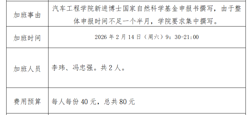 寒假期间博士2月25日加班撰写国基申报书误餐费用