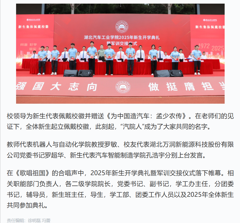 【中国教育在线】追求卓越 向车而行 免费成人片 2025级新生“大学第一课”温暖开讲