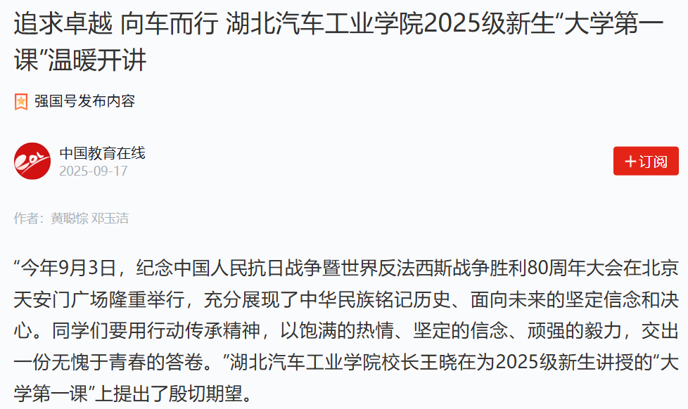 【中国教育在线学习强国号】追求卓越 向车而行 免费成人片 2025级新生“大学第一课”温暖开讲